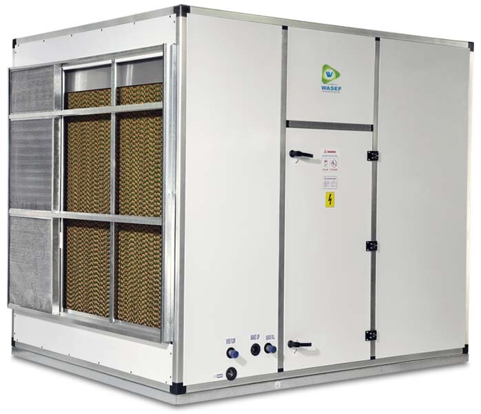 - Option with air washer section having Very high efficiency (upto 90%) with 'Cellulose Paper' cooling pads